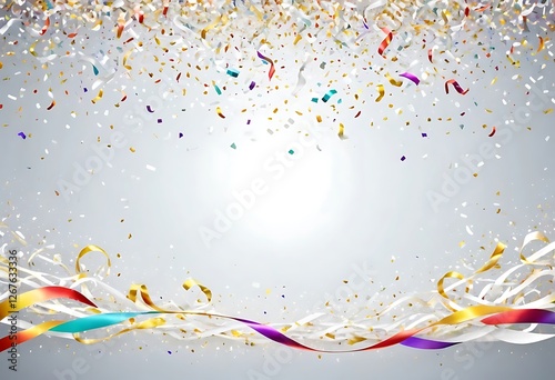 Fototapeta premium Celebratory Confetti Shower and Streamers on Soft Illuminated Gradient