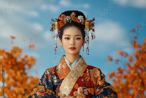© JPminimal, Fototapeta premium Celebratory Festival Costumes Blending High-Tech Design with Cultural Tradition in an Outdoor Setting