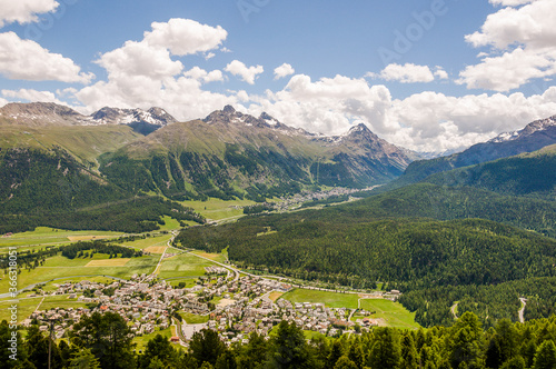 Fototapeta premium Celerina, Pontresina, Dorf, Oberengadin, Corviglia, Stazerwald, Muottas...