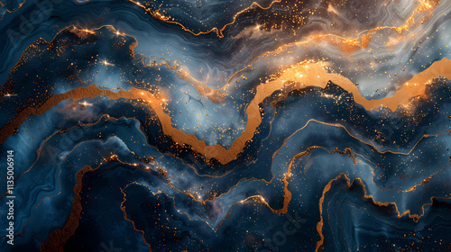 Fototapeta premium Celestial Abstract: An ethereal, abstract composition featuring a swirling, swirling pattern in shades of blue and gold. The image evokes a sense of cosmic wonder.