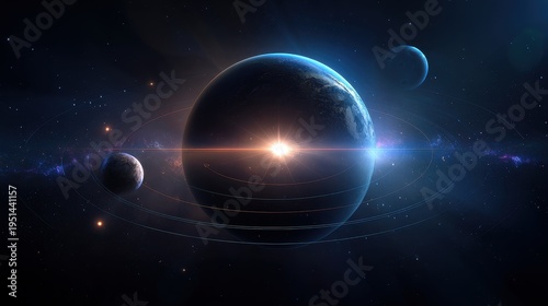 Fototapeta premium Celestial alignment planetary motion concept of balance and destiny copy space universal order theme futuristic silhouette orbital path backdrop