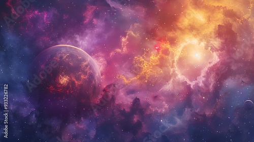 © Bussakon, Obraz premium Celestial Alignment Vibrant Cosmic Landscape with Planetary Conjunction