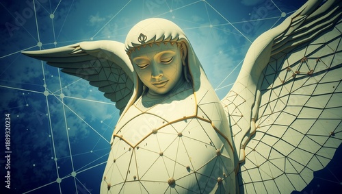 Naklejka premium Celestial Angel with Geometric Patterns