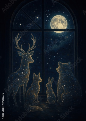 © Rawpixel.com, Obraz premium Celestial animals under moonlight.