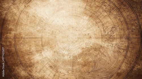 Naklejka premium Celestial Aquarius Zodiac Sign on Faux Parchment Star Map with Wave Lines - Cinematic Astrology Concept Artwork