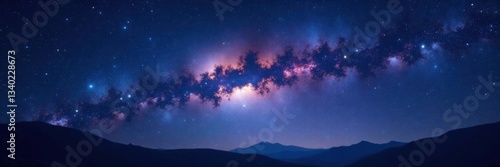 Fototapeta premium Celestial beauty of a starry night sky with a distant galaxy in the background, cosmic, dark blue
