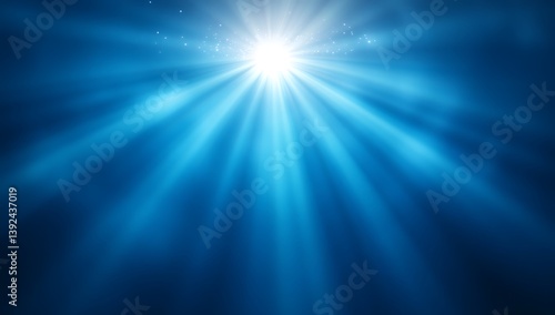 Fototapeta premium Celestial Blue Light Rays with Glowing Starburst, and Deep Ocean.