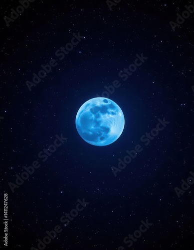 Fototapeta premium Celestial blue moon, countless stars, dark vast night sky, peaceful, nature