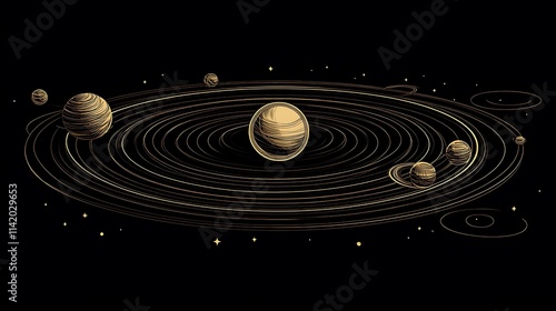 Obraz premium Celestial Bodies in Orbit Illustrating the Solar System Design