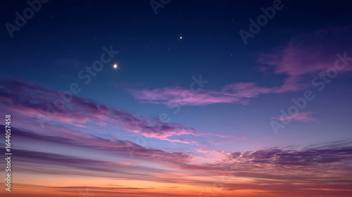 Fototapeta premium Celestial bodies shining through vibrant sunset clouds twilight purple clouds