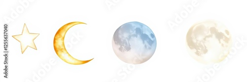Obraz premium Celestial Bodies Star Crescent Moon Full Moon Phases Night Sky Space Galaxy...
