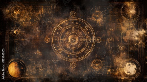 © sungedi, Fototapeta premium Celestial Chart Ancient Cosmos Map Design