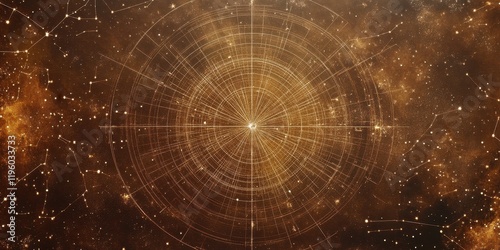 Fototapeta premium Celestial Chart Golden Radiating Star Constellations