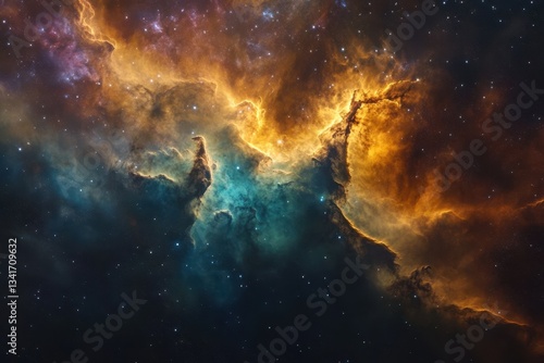 Fototapeta premium Celestial clouds and stars illuminate the vast universe in vibrant colors