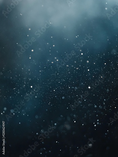 Fototapeta premium Celestial Dance: Captivating image of tiny glowing particles scattered against a moody, atmospheric blue background, reminiscent of a starlit night sky or underwater scene.