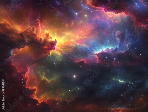 Fototapeta premium Celestial Dance of Light and Life in the Cosmic Nebula