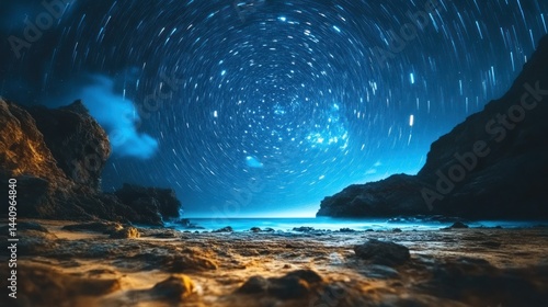 © @Luthfi, Naklejka premium Celestial Dance Over Coastal Cliffs: A Night Sky Symphony