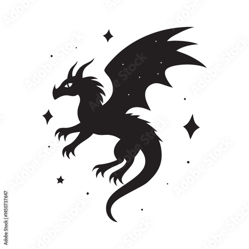 Fototapeta premium Celestial Dragon With Wings Silhouette Art