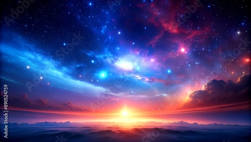 © Aumporn, Fototapeta premium Celestial Echoes in the Digital Dusk Generative AI Algorithmic art