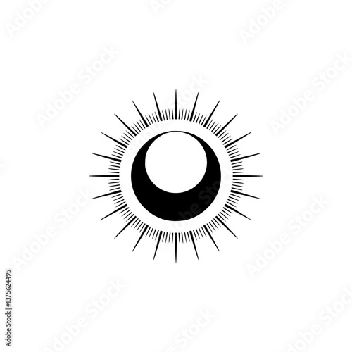 Fototapeta premium Celestial Eclipse: Minimalist Sun and Moon Symbol on White Background