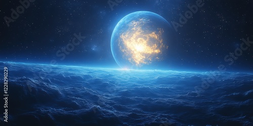 Fototapeta premium Celestial event blue planet in space digital cosmic environment stellar viewpoint interstellar concept