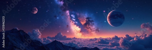 Naklejka premium Celestial expanse with starry sky and planets , nebula, vastness, universe