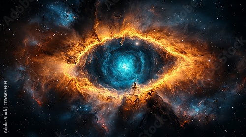 Naklejka premium Celestial Eye Cosmic Nebula Fiery Orange And Blue Hues