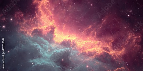 © Ilja, Fototapeta premium Celestial Firestorm Vibrant Nebula, Glowing Clouds, and Infinite Starscape in Deep Space