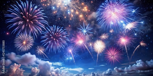 Fototapeta premium Celestial Fireworks Night Sky Burst of Color and Light