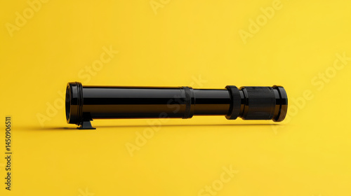 Fototapeta premium Celestial Focus: Realistic Black Telescope Side View on Yellow Canvas