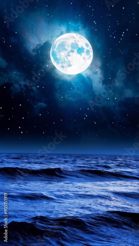 Fototapeta premium Celestial Full Moon over Dreamy Ocean