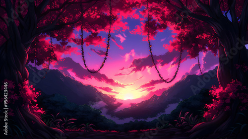 Obraz premium Celestial Garden Landscape Anime Style