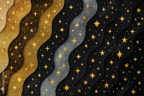 Fototapeta premium Celestial Gold and Black Starry Wave Pattern