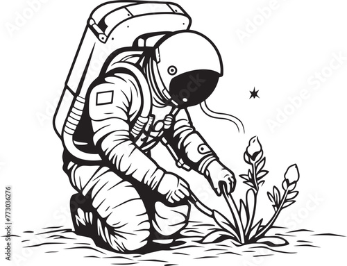© BABBAN, Fototapeta premium Celestial Harvest Vector Logo Design Astronautic Oasis Plant Watering Emblem