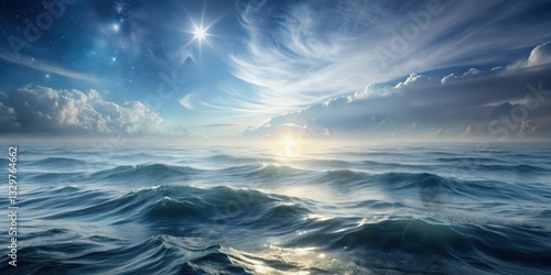 © Kitiphong, Obraz premium Celestial horizon with soft gray horizontal waves, oceanic, misty