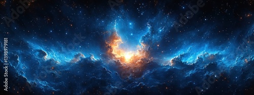 Obraz premium Celestial Light Burst Blue Glow Optical Flare Shine Radiance Sparkle Bokeh Effect Abstract Star Explosion