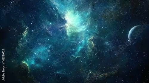 Fototapeta premium Celestial Nebula And Planet In Deep Space