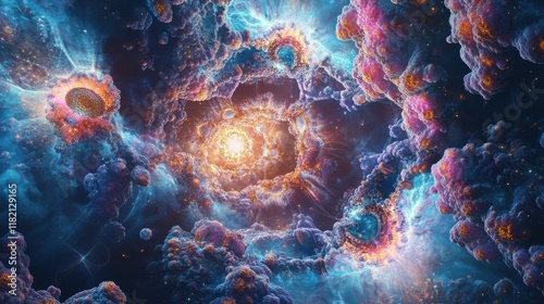 Fototapeta premium Celestial Nebula Cosmic Cloudscape Glowing Brilliantly