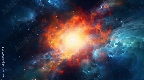 © Andisucijaya, Fototapeta premium Celestial Nebula Cosmic Explosion Fiery Starburst