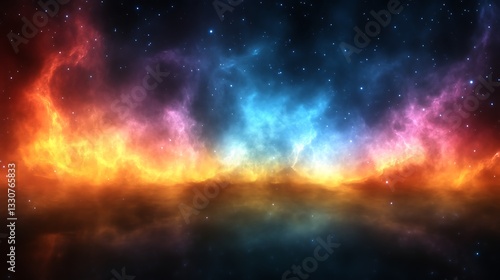 © Mukmin, Naklejka premium Celestial Nebula Displaying Vivid Orange And Blue Hues