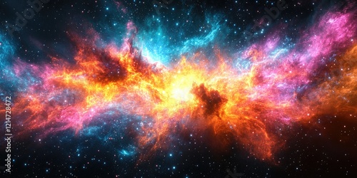 Fototapeta premium Celestial Nebula In Vivid Hues Of Pink, Orange And Blue