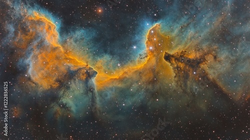 Fototapeta premium Celestial Nebula Twin Pillars of Cosmic Dust and Gas