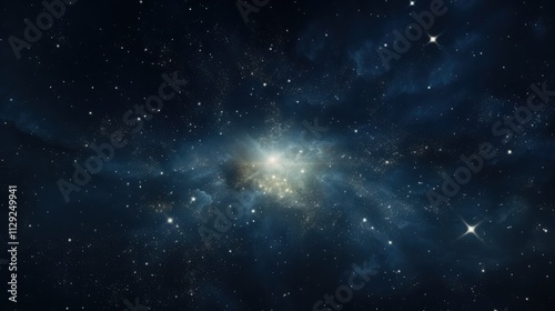 Naklejka premium Celestial Nebula with Bright Star and Distant Galaxies