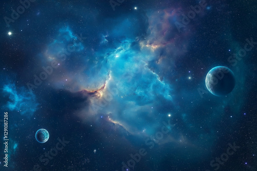 © Konrad, Fototapeta premium Celestial Nebula with Planets in a Cosmic Landscape