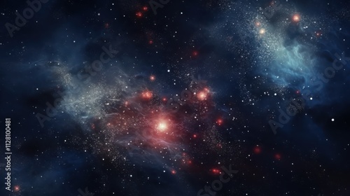 Naklejka premium Celestial Nebulae Red And Blue Cosmic Dust Stars