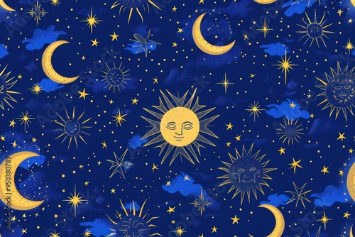 © yachyah, Fototapeta premium Celestial Night Sky Pattern