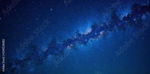 Obraz premium Celestial night sky with stars and galaxy in deep blue background, stars, darkness