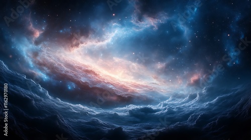 © lisa, Fototapeta premium Celestial Ocean A Cosmic Nebula Landscape
