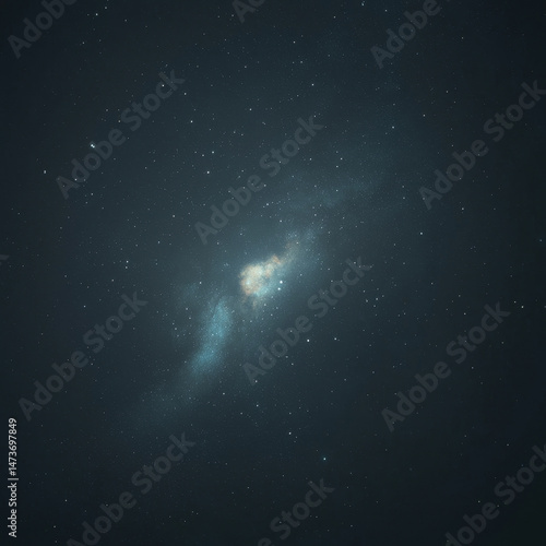 © Prachya, Fototapeta premium Celestial panorama: star-studded night sky with a faint, luminous galaxy