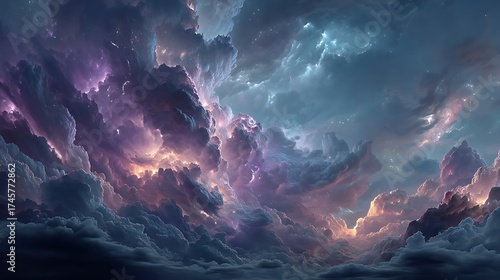 © Debbrot, Fototapeta premium Celestial purple lightning sky high resolution image